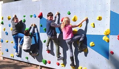 Gefördert würde dieses Projekt von der Schulstiftung Baden-Württemberg. Neben einigen Outdoor-Aktivitäten wie eine Slack-Line, Outdoor-Tischkicker und diversen anderen Outdoor-Spielen, kann nun in den Pausen auf einer von ca. 2,60m Höhe und einer Breite von 8 Metern ohne Sicherung geklettert werden. Zusätzlich wurde noch eine weitere Outdoor-Tischtennisplatte angeschafft. Beides wurde nun wurde im Rahmen eines Lehrer/Schüler-Projekts, gemeinsam mit der Technikabteilung des Pädagogiums Baden-Baden aufgebaut und die Kletterrouten festgelegt. Schon bald nach der Fertigstellung wurde die Kletterwand, vor allem für die jüngeren Schüler, zum Hot- Spot in den Pausen.