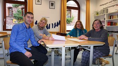 Andreas Büchler, Schulleiter der beiden beruflichen Gymnasien am Pädagogium, machte sich auf die Suche und fand in den pensionierten Lehrkräften Anita Menrath und Gabriele Haug-Lamberty zwei Menschen, die spontan und direkt ihre ehrenamtliche Hilfe zusicherten. Seit Mitte Oktober besucht Ibrahim nun wöchentlich das Päda, das Räume und Material für den Unterricht zur Verfügung stellt. Deutsch und Englisch stehen auf dem Stundenplan, wohlgemerkt neben Ibrahims Pensum an der Volkshochschule, wo er nicht nur den Integrationskurs besucht, sondern auch freiwillig an weiteren Deutsch- und Englisch-Kursen teilnimmt. Neben seinem Fleiß und seinem Willen, möglich viel zu lernen, loben die beiden Lehrerinnen seine Höflichkeit, Freundlichkeit und seine Aufgeschlossenheit.