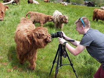 Dort stellte Frau Christine Baumann den Schülern ihre schottischen Hochlandrinder vor. Sie erfuhren dort einiges über die biologische Viehwirtschaft, die schottischen Hochlandrinder und deren artgerechte Haltung. Besonders fasziniert waren die Schüler des Pädagogiums von der Friedfertigkeit der Tiere, so dass sie das Interview mit Frau Baumann mitten auf der Viehweide drehen konnten. Frau Baumann erklärte Ihnen unter anderem den Unterschied ihres Bio-Hofes zu der Massentierhaltung, was Mutterkuhhaltung bedeutet und warum die ökologische Viehwirtschaft ihr ganz spezielles Anliegen ist.