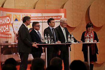 Insgesamt waren sich alle Diskutanten aber einig: Man brauche eine „Politik auf Augenhöhe mit einem gleichwertigen Partner“ (Wolf), Freie Schulen seien ein „wertvolles Angebot“ (Schmid) und ein „wichtiger Teil des öffentlichen Schulwesens“ (Kretschmann). Auch eine „angemessene“ Finanzierung (Rülke) sei unablässig.