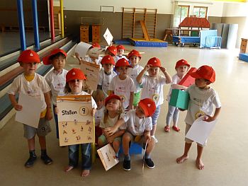 Danach erhielten die Kinder ihre Laufkarten und es konnte losgehen. Die Kleinen hatten verschiedene Übungen, wie zum Beispiel über Medizinbälle balancieren, an der Sprossenwand hinaufsteigen und über eine Rutsche hinunterrutschen, zu meistern. Eine weitere Station war, dass die Kinder auf einen Kasten klettern und auf der anderen Seite hinuntersprangen. Bei den einzelnen Stationen konnten die Kinder spielerisch Gleichgewicht, Koordination, Geschicklichkeit, Kraft und Konzentration trainieren.