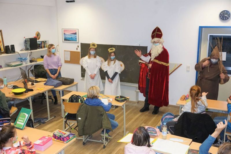 Doch zuerst schlägt Nikolaus sein goldenes Buch auf. Darin steht alles über die Kinder, die vor ihm sitzen und keinen lässt er aus. Tatsächlich weiß er auch viel zu berichten: Über Mitarbeit, Verhalten und den Fleiß der Schüler*innen. Schließlich öffnet sich der große Geschenkesack und Engel, Knecht Ruprecht und der heilige Mann verteilen, was sie mitgebracht haben. Danach geht es weiter, denn es sind noch weitere Klassen zu besuchen.