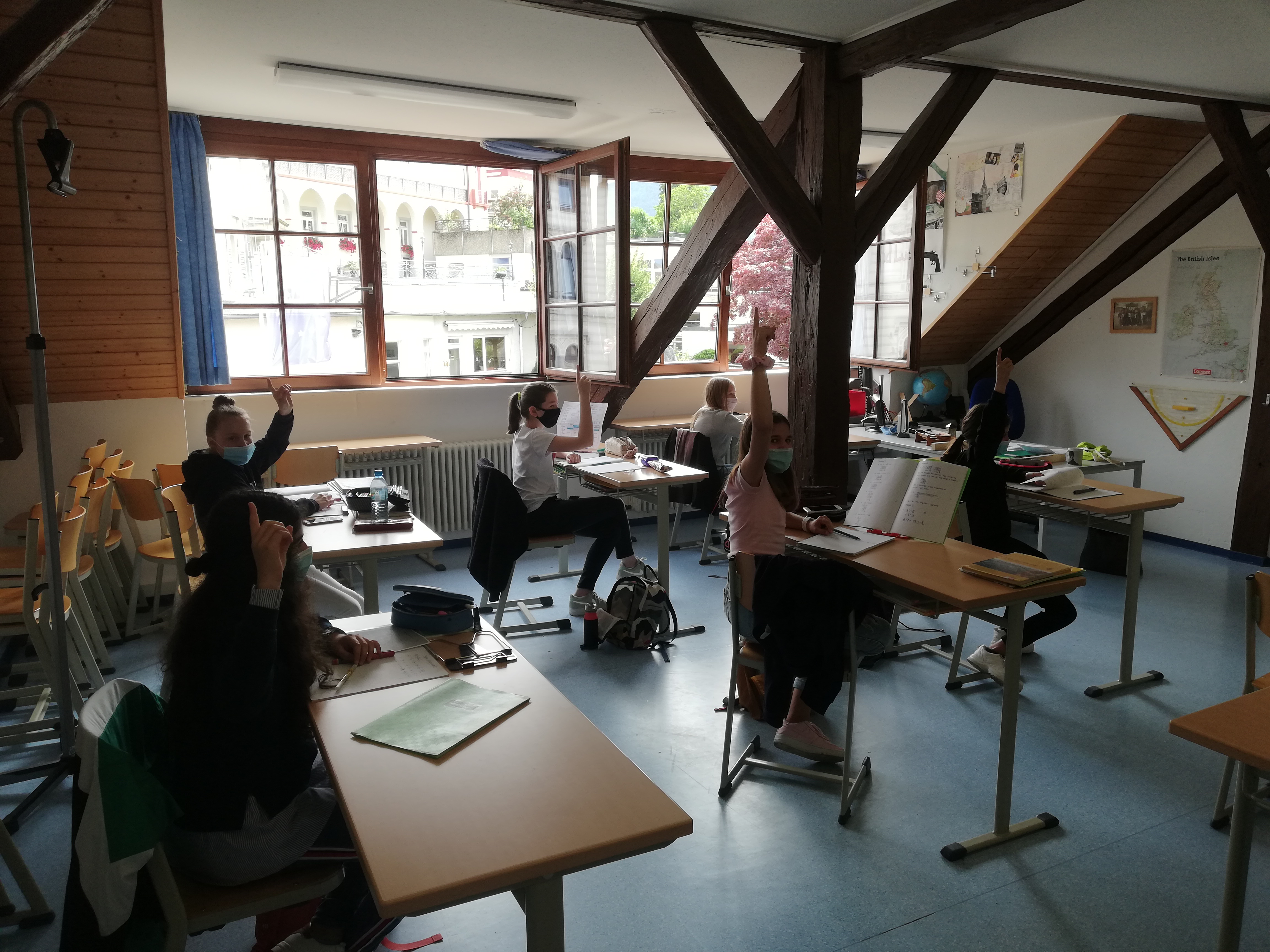 Von der 5. bis zur 13. Klasse werden die Schüler*innen in der halben Klassenstärke unterrichtet.