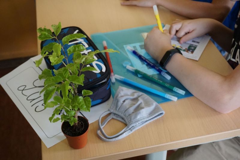 Zur Begrüßung spielte Vivienne Kapllani aus der Klasse 6b des Gymnasiums am Flügel einen Walzer von Chopin. Dass durfte sie in diesem Jahr gleich dreimal hintereinander tun, denn aufgrund der Corona-Bestimmungen und der vielen neuen Schüler*innen erfolgte die Einschulung in Etappen. Nach der Vorstellung der Klassenlehrer*innen, des Freizeitteams und der Schulsozialpädagogik wurden die neuen Schüler*innen von ihren Klassenlehrern in Empfang genommen. Im Klassenzimmer wartete dann an jedem Platz und als Überraschung ein kleines Pflänzchen auf jeden Schüler, und damit verbunden die erste „Hausaufgabe“: „Auf euer Pflänzchen sollt ihr aufpassen und es pflegen, damit es euch später einmal an eure schöne Schulzeit erinnert“, erläuterte Matthias Fischer, der selbst Co-Klassenlehrer einer fünften Klasse ist.