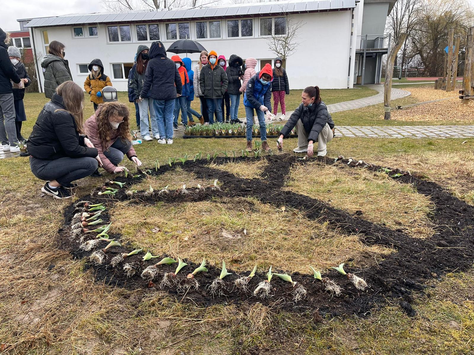 Am 14. März hatten die Schülerinnen und Schüler der Schloss-Schule Kirchberg die Möglichkeit, auf dem Schulgelände eine oder mehrere Pflanzen zu vergraben. Das Ganze fand im Rahmen einer Spendenaktion über die SMV der Schloss-Schule statt.