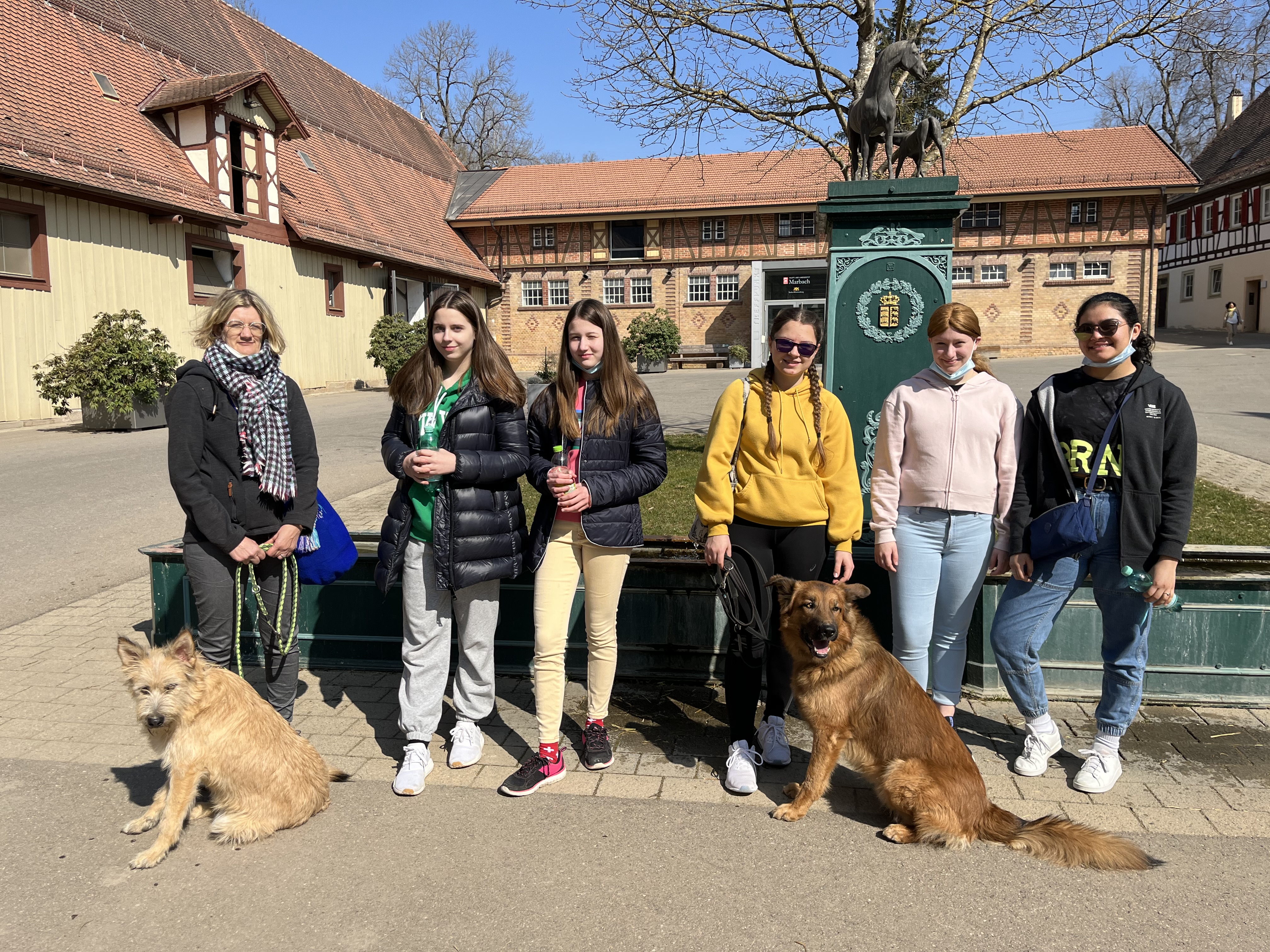 Gesagt – getan – mit sechs Personen machten sich die AG-Teilnehmerinnen bei strahlendem Sonnenschein auf den Weg. Dort angekommen erhielten sie eine sehr schöne Führung mit vielen Informationen über Zucht und Haltung und natürlich war es das Highlight die Pferde – vor allem die Fohlen – live zu sehen. Das Gestüt des Landes Baden-Württemberg ist eines der vier noch bestehenden Hauptgestüte in Deutschland und ist eine wichtige Anlaufstelle für Reitsportler und Pferdezüchter