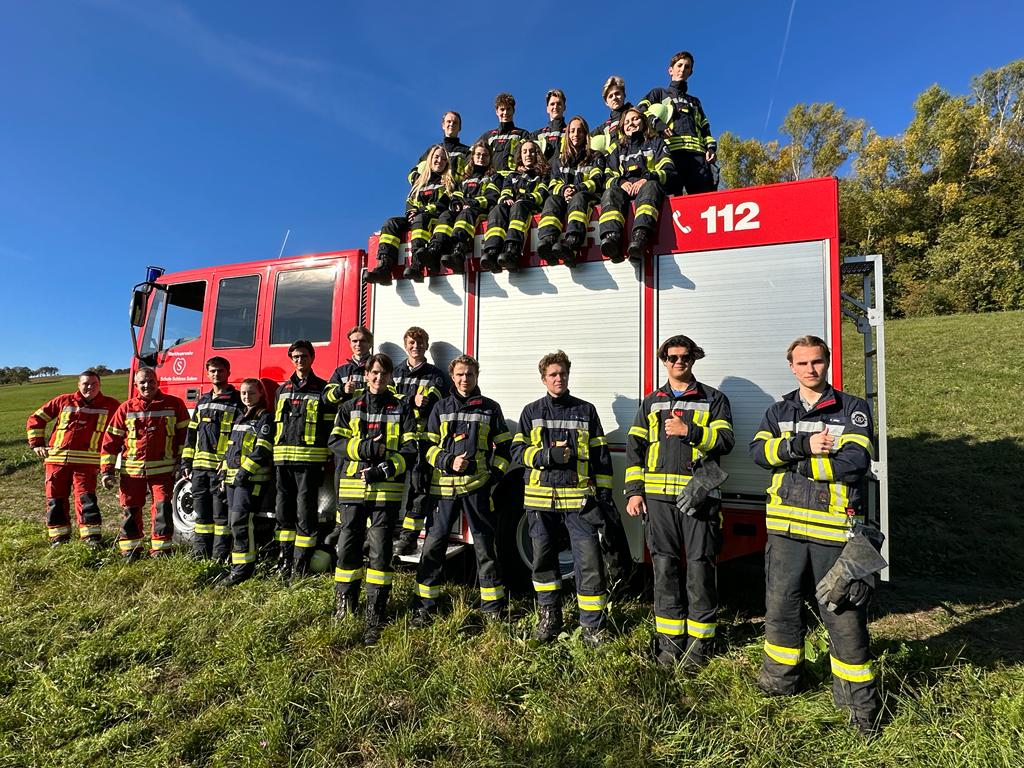 Die Schülerinnen und Schüler erlernen im Feuerwehrdienst Grundlagen wie Knotenkunde, Fahrzeug- und Gerätekunde, Brandbekämpfung, Selbst- und Fremdrettung.