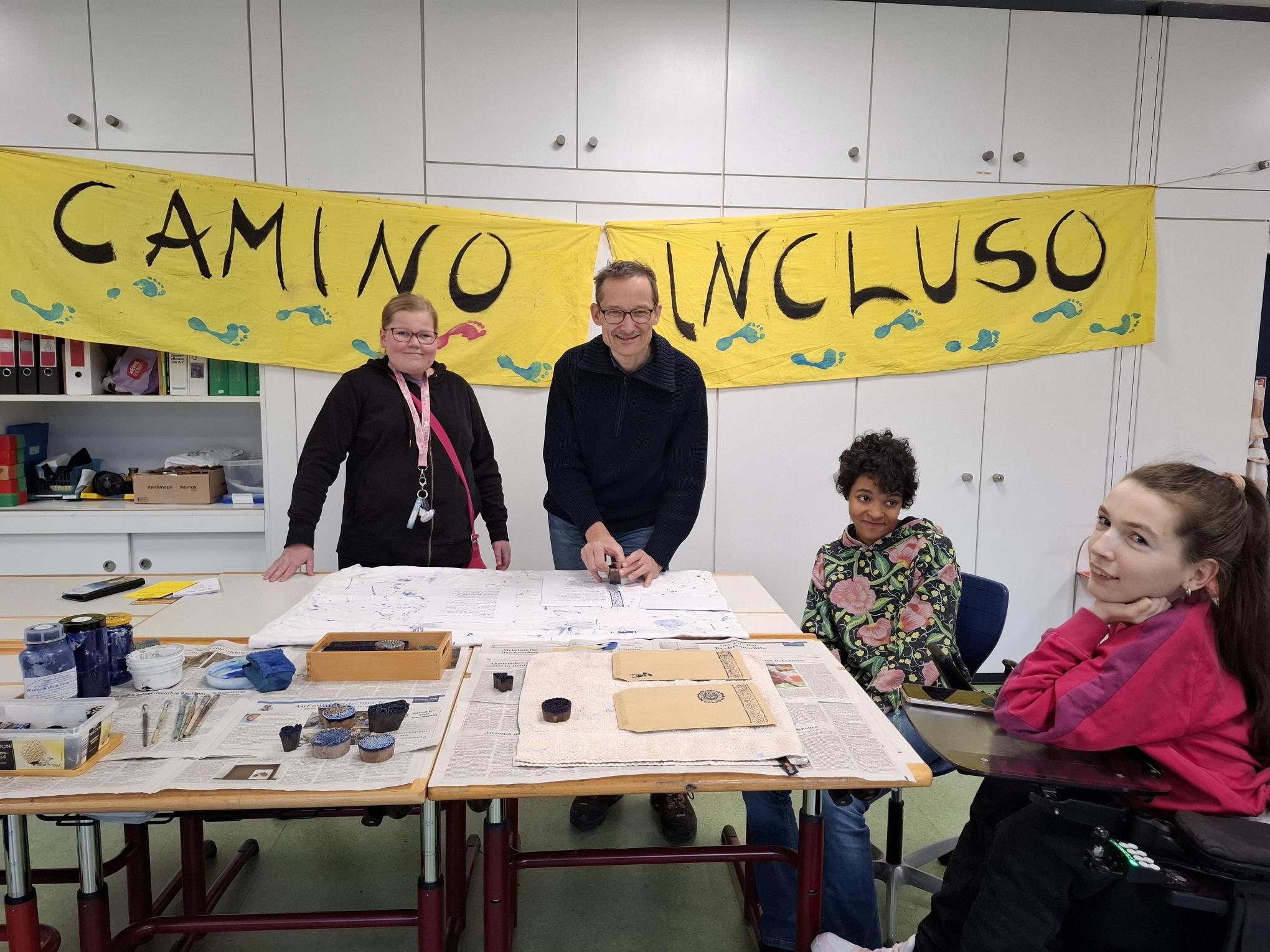 Der Besuch bot Herrn Katzenstein einen umfassenden Einblick in die pädagogische und hand-werkliche Arbeit am Camino Incluso. Mit vielen neuen Informationen und Anregungen verabschiedete er sich aus der Pilgerwerkstatt. Die Schüler:innen freuten sich indessen sichtlich über das an-haltende Interesse an ihrem Projekt. So war der Besuch des Abgeordneten ein sichtlich motivierender Moment – denn er ließ die Schüler:innen erleben, wie ernst ihre Arbeit genommen und wie aufmerksam ihr Engagement wahrgenommen wird.