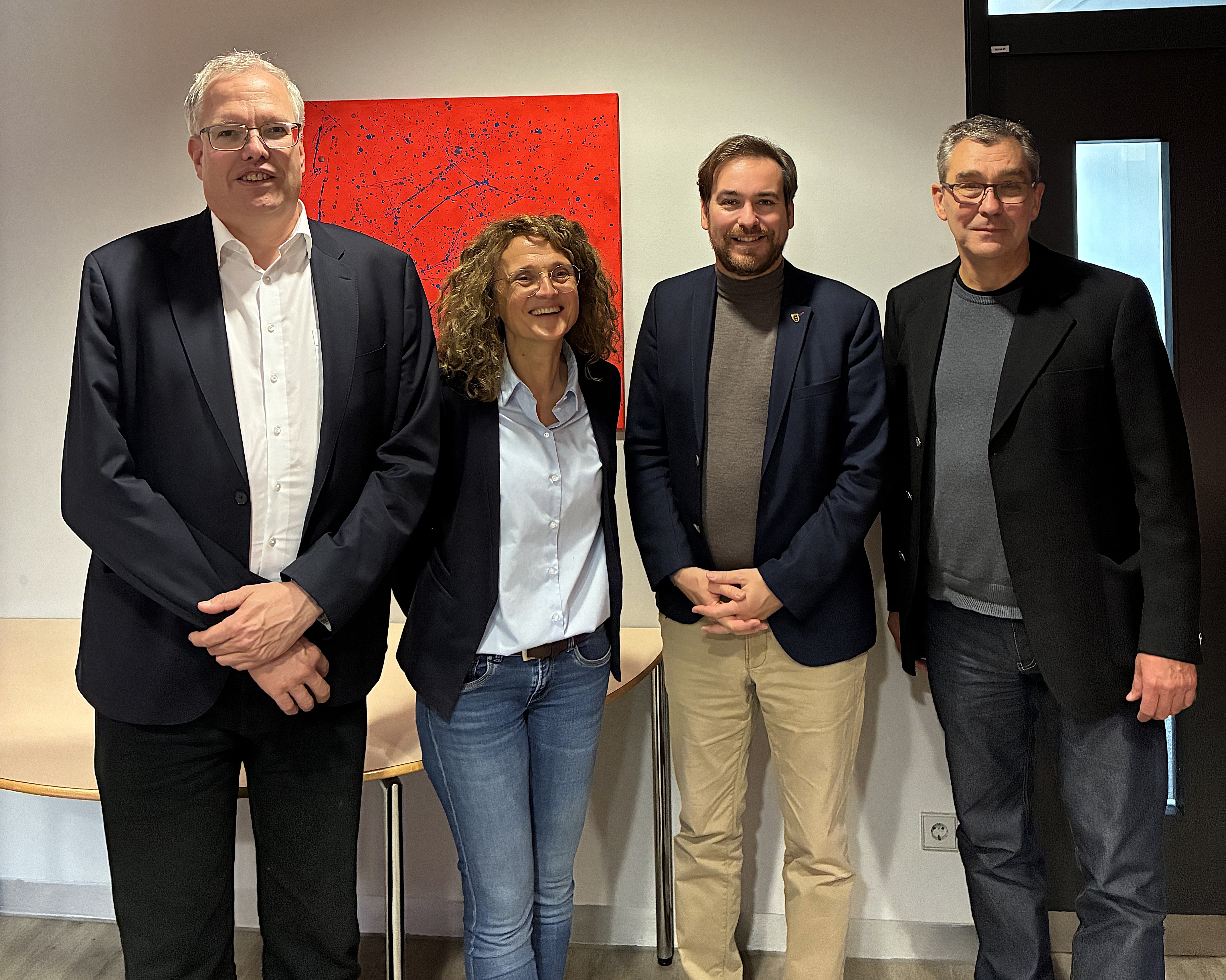 Fotohinweis: Foto: v.l.n.r.: Dr. Albrecht Schütte, Jutta Dehner (Internatsleitung SRH Stephen-Hawking-Schule), Andreas Sturm, Dr. Tobias Böcker.