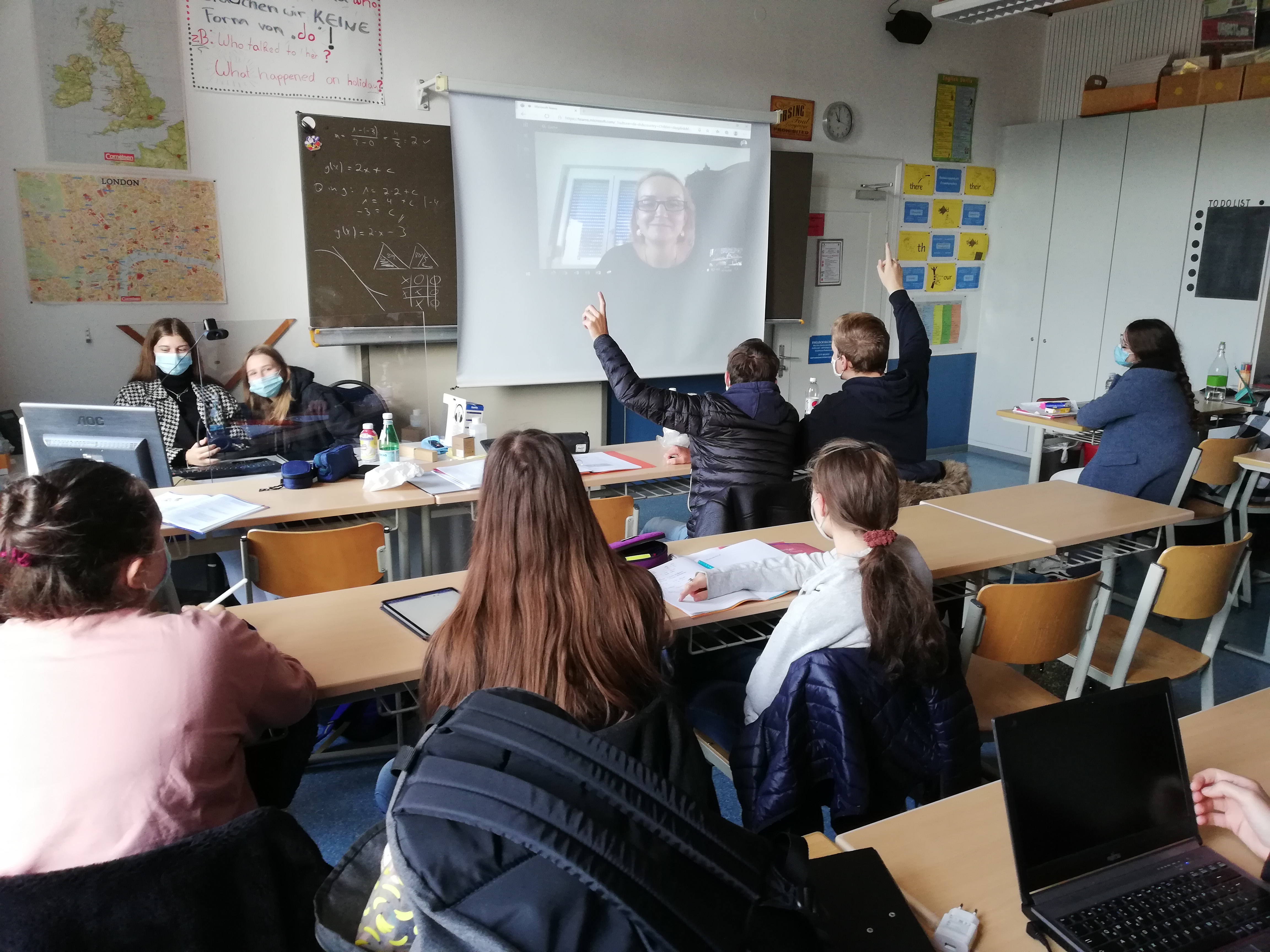 Foto oben: Unterricht mit der zugeschalteten Spanischlehrerin über Teams