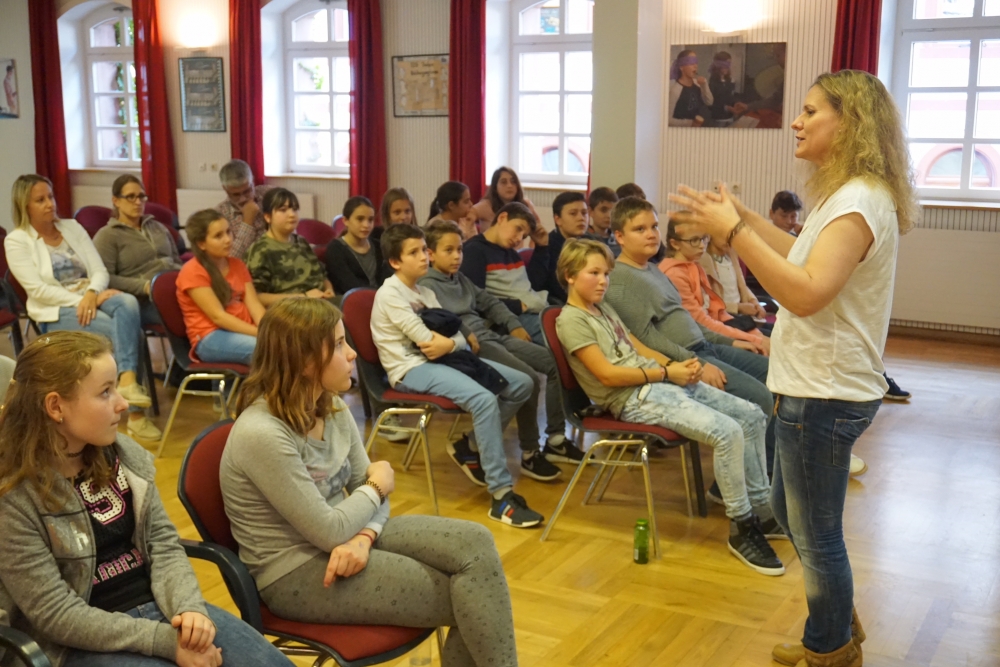 Zu Beginn der Lesung der anderen Art hatte sie aus ihrem Leben und ihrem Weg zur Schriftstellerin erzählt. Besonders beeindruckt hat das junge Publikum, dass Frau Harder schon mit zehn Jahren ihren eigenen Detektivclub gründete und damit den Grundstein zu ihrem jetzigen Beruf legte.