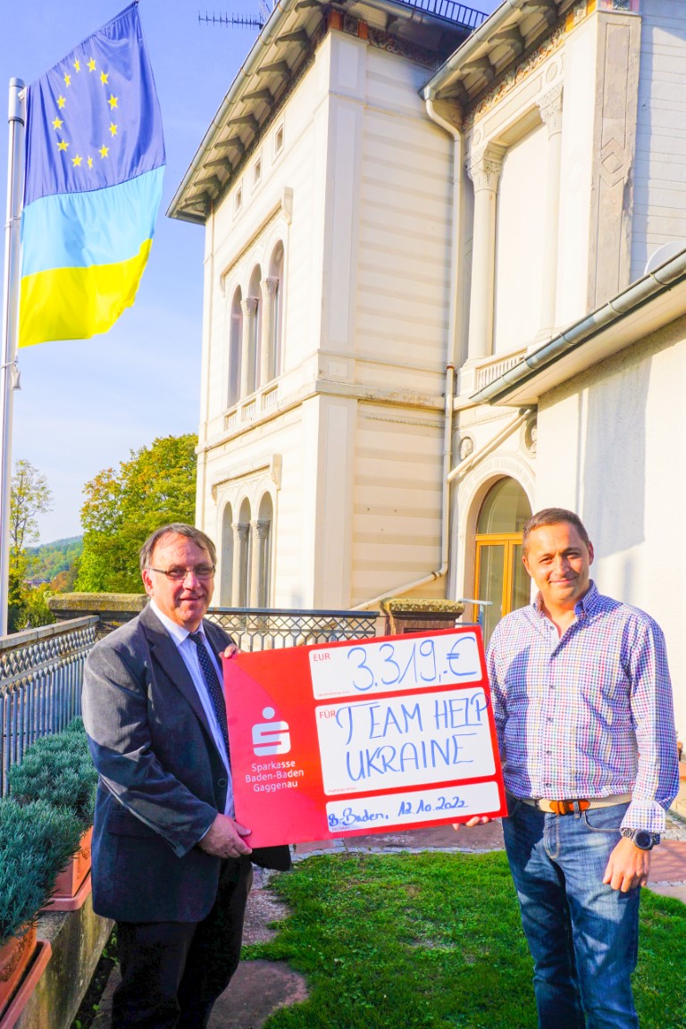 Umso mehr freut er sich, dass er von der Schulstiftung Pädagogium den Gewinn aus dem Sommerfest der Grundschule und dem Terrassenfest 2022 erhält: 3319 Euro, mit der er noch am gleichen Tag zu Firma Decathlon fährt und dort insgesamt 70 Schlafsäcke sowie 70 warme Oberteile und Hosen einkauft, denn es wird kalt in der Ukraine und das Material dringend benötigt. Noch im Oktober startet die Hilfslieferung, die direkt vor Ort ankommt und verteilt wird. Dazu hat er das "Team Help Ukraine" ins Leben gerufen, über die Arbeit kann man sich auf seiner Homepage "Team Help Ukraine" informieren und auch spenden. "Wir helfen unbürokratisch und direkt vor Ort", sagt er und ist froh, dass er auch durch seinen Arbeitgeber, die IKG in Baden-Baden große Unterstützung erfährt. Auch Matthias Fischer, stellvertretender Schulleiter der Schulstiftung Pädagogium freut sich, die Spende überreichen zu können.