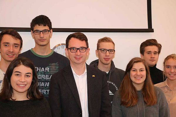Die Schüler/innen haben aus erster Hand erfahren, was den Alltag von Jonas Weber bestimmt und wie die Arbeit im Parlament und in den Ausschüssen funktioniert. Zielsetzung ist es, durch den direkten Kontakt mit Landtagsabgeordneten das staatsbürgerliche Interesse der Schülerinnen und Schüler anzuregen. Das Spektrum der Fragen war sehr breit und zum Teil direkt. So wollten die Schüler/innen wissen, wie Jonas Weber die Entwicklung innerhalb SPD beurteilt, was er tun könne, um Jugendlichen in der Politik eine Stimme zu geben, wie die Politik Studenten und Auszubildende bei der Wohnungsfinanzierung unterstützen könne, wie er zu Stuttgart 21 und zum Debakel am Berliner Flughafen steht, was ist sein Position zu Dieselskandal /Klimawandel/E-Mobilität/ autonomen Fahren?