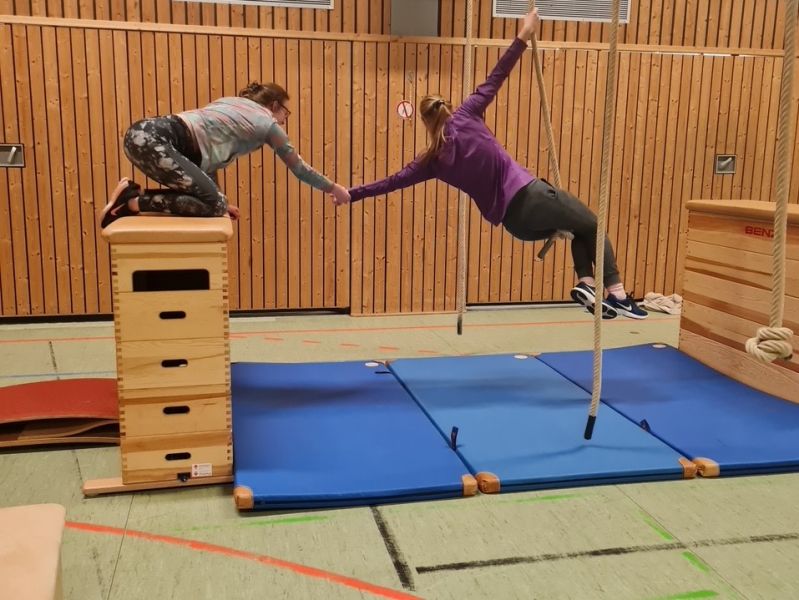 Diese hatten sich jüngst in der Sporthalle zum Sportabend mit dem Geschicklichkeits-Parcours eingefunden. Gespannt lauschten sie den Mentorinnen und Erzieherinnen, die den Ablauf und die anspruchsvollen Übungen erklärten. Das eine ist aber immer die Theorie, gefragt ist die Praxis. Und Lara Bareiß, eine der Mentorinnen und Initiatorin, ging dann selbst die einzelnen Stationen durch und machte die Übungen vor. Mal auf dem Schwebebalken balancierend, dann wieder die Sprossenwand hochkletternd, um sich später wie an einer Liane (Tarzan und Jane ließen grüßen) auf einen entfernten Kasten zu schwingen. Geschicklichkeit und Körperbeherrschung ist alles, die Schülerinnen applaudierten. Nun aber waren sie an der Reihe, anfangs schüchtern und zaghaft, legten sie ihre Ängste und Scheu ab und durchliefen selbst den Parcour. Anspruchsvoll waren die Aufgaben, aber auch der Humor und Rhythmus kamen nicht zu kurz. Bei hippen Beats und Klängen aus der Box, machte es gleich doppelt Spaß die Balance zu halten oder neue Ideen zu kreieren, wie die Übungen zu bewerkstelligen seien. Improvisation war auch gefragt.