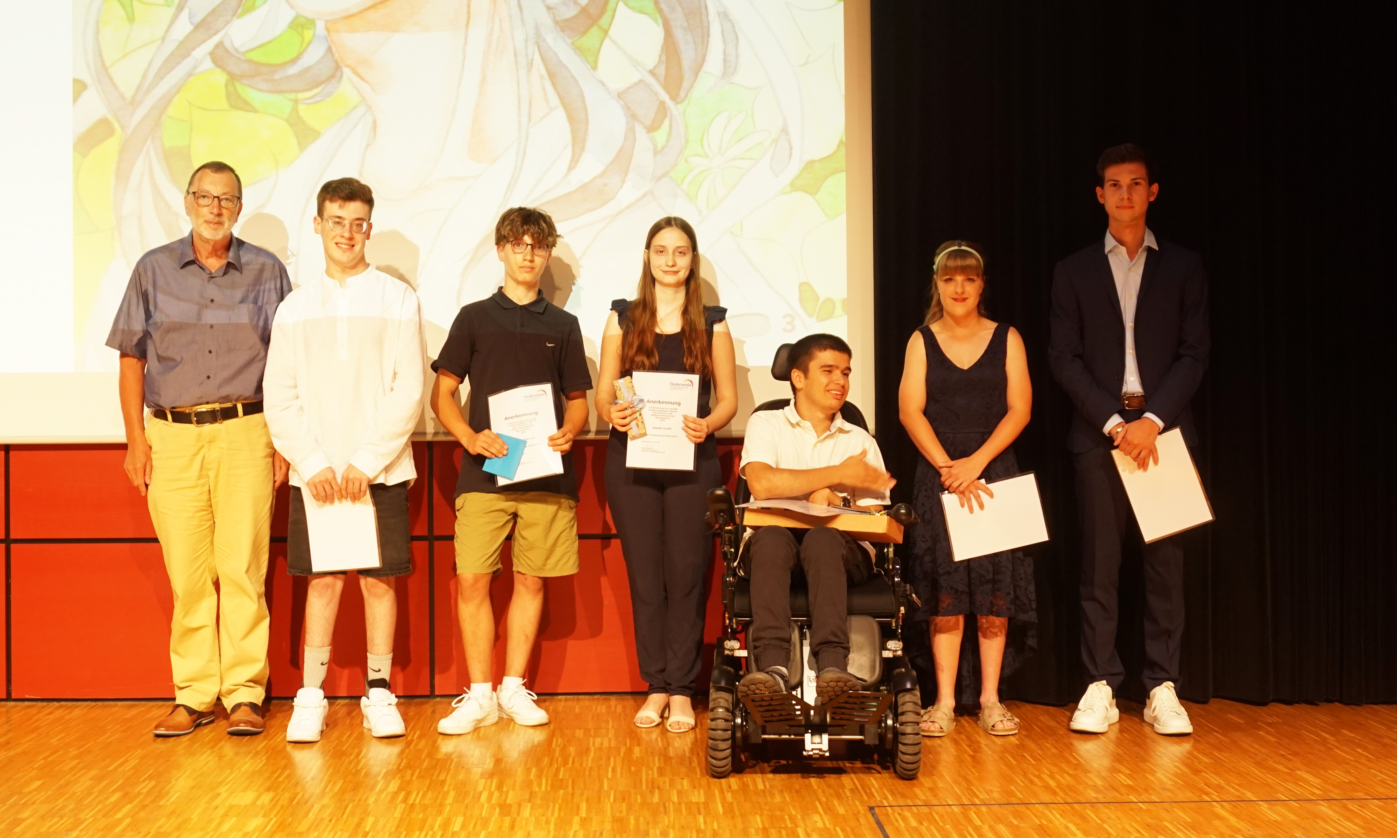 Foto oben: Preisträger:innen des Sozialpreises des Fördervereins der SRH Stephen-HawkingSchule mit Volker Moessinger, 2. Vorsitzender des Fördervereins des SRH Bildungszentrums Neckargemünd.