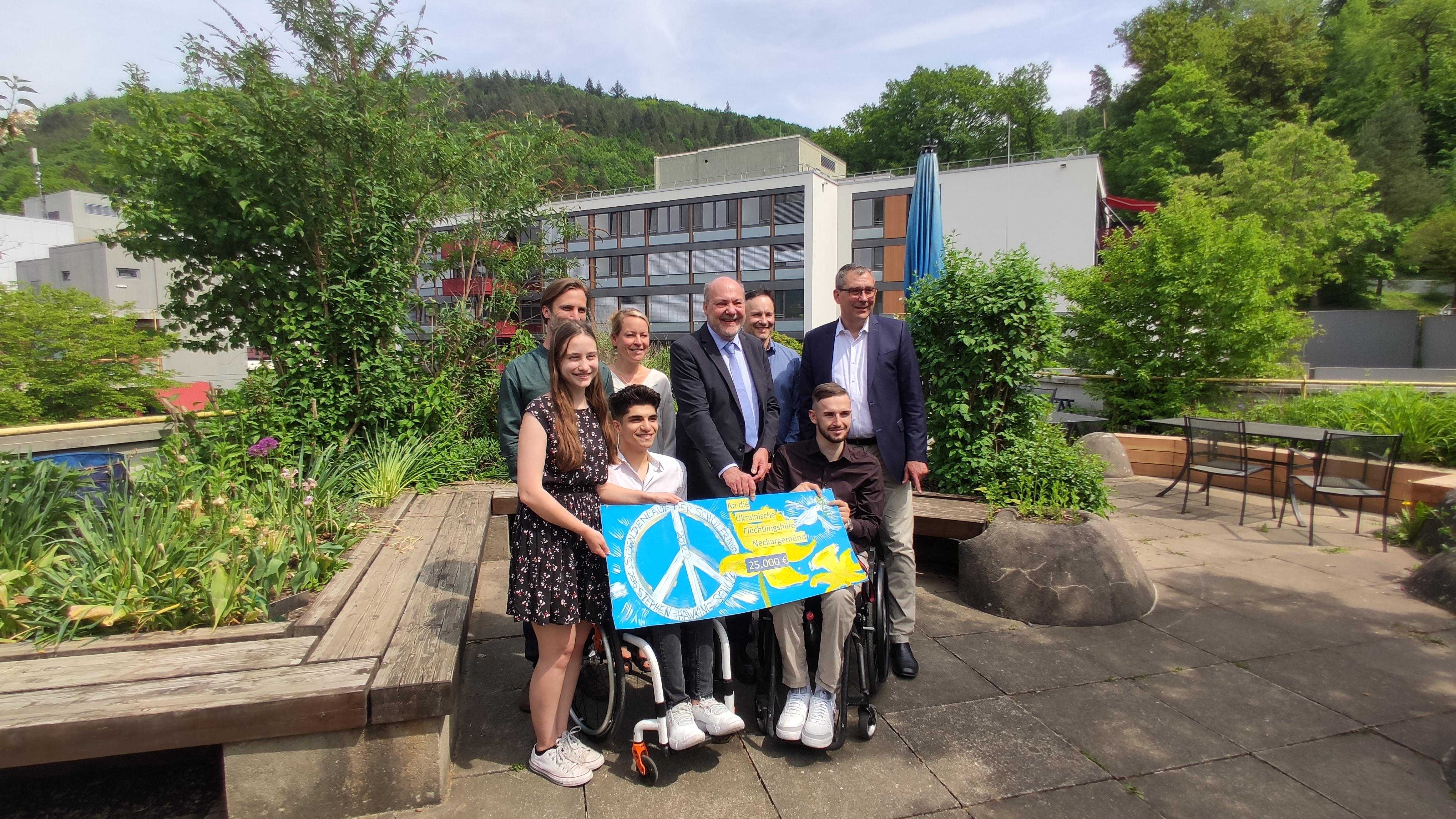 In einer kleinen Feierstunde überreichten die Schülersprecher:innen gemeinsam mit den projektverantwortlichen Lehrkräften des UNESCO-Schulteam sowie der Geschäftsführung und Schulleitung die Spendensumme von 25.000 Euro an den Bürgermeister.