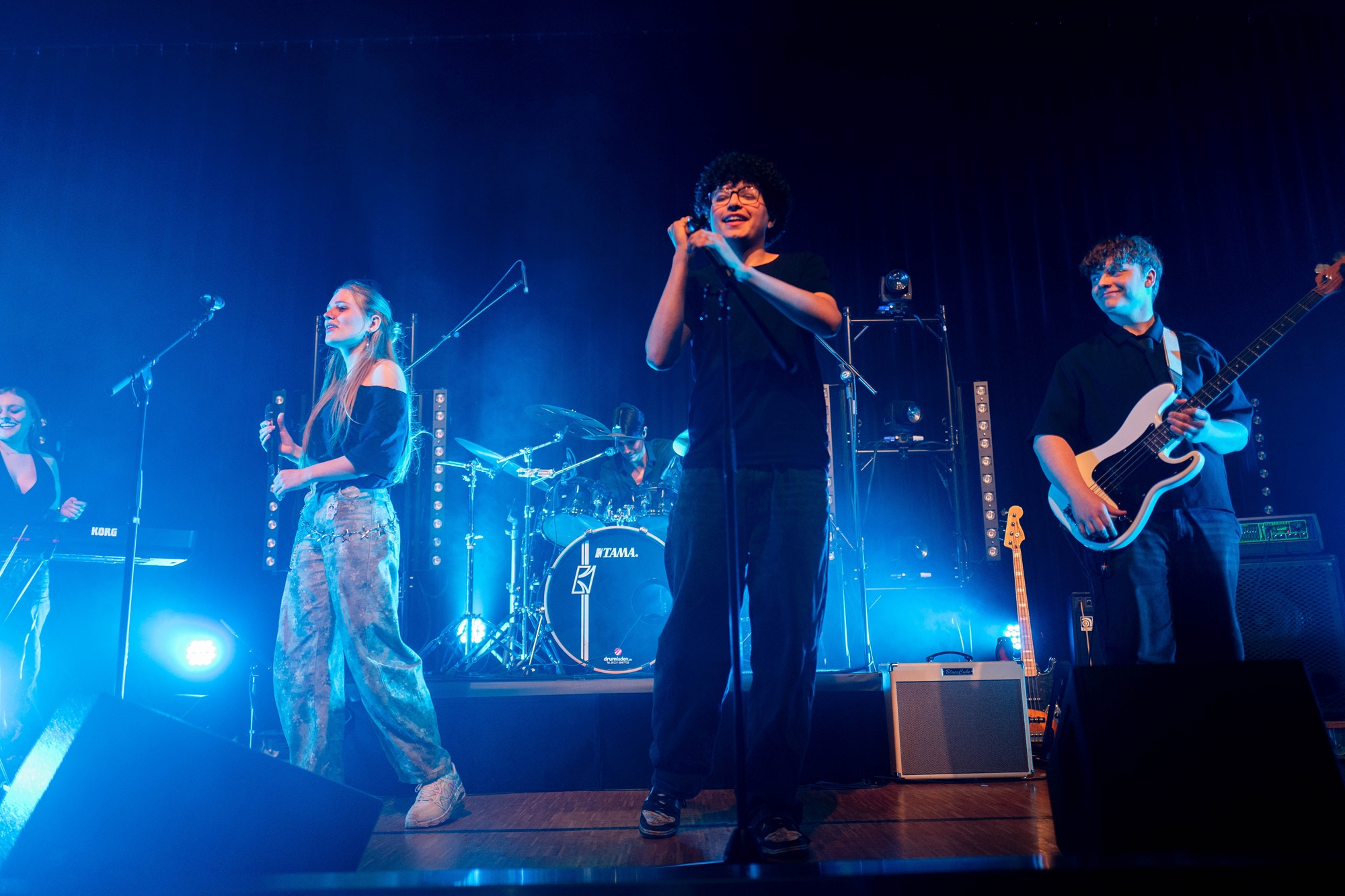 Dröhnende Bässe, flackerndes Bühnenlicht und junge Musiker:innen, die die Aula der SRH Schulen GmbH (SRHS) in Neckargemünd zum Beben brachten: Beim Abschlusskonzert des SRH School Band Award am Samstag, 28. Februar begeisterten acht Schülerbands das Publikum und zeigten, was in ihnen steckt. Sechs Finalbands – jeweils drei in den Kategorien U15 und Ü15 – hatten sich zuvor gegen mehr als 30 Mitbewerber:innen durchgesetzt, ergänzt durch eine Band aus dem eigenen Haus, die außer Konkurrenz am Publikumspreis teilnahm. Zusätzlich sorgte eine weitere Schülerband der SRH Stephen-Hawking-Schule in der Pause für gute Stimmung.