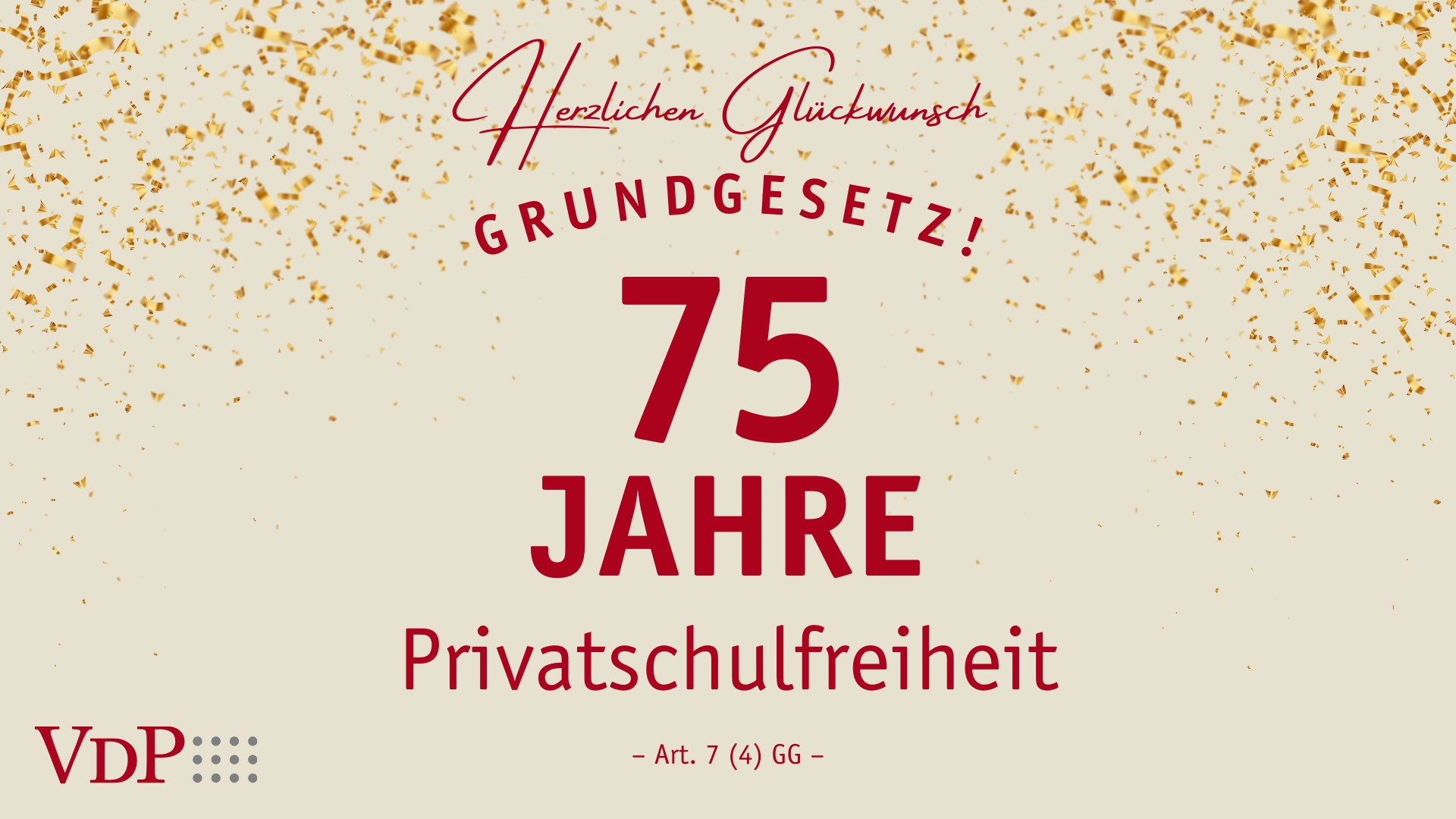 Wir freuen uns besonders auch über die 75 Jahre Privatschulfreiheit, die in Art.7 (4) GG festgehalten ist! Sie ist der Garant für Bildungsvielfalt, Elternwahlrecht und wichtige pädagogische und bildungspolitische Innovationen und Qualitäten.
